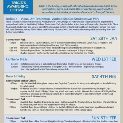 Today on The Arts Programme Ursula Ledwith is joined by Paddy Cullivan, Author, Actor and Musician. Paddy is performing his Piece, The Murder of Michael Collins, in The Roscommon Arts Centre on the 3rd of February, Caroline Callery on the Board of Directors, leading St. Brigid Awaking Festival at Strokestown House and Tony Breathnach who made a short video, on a poem he wrote, remembering the Blind Poet , O’Rafferty.